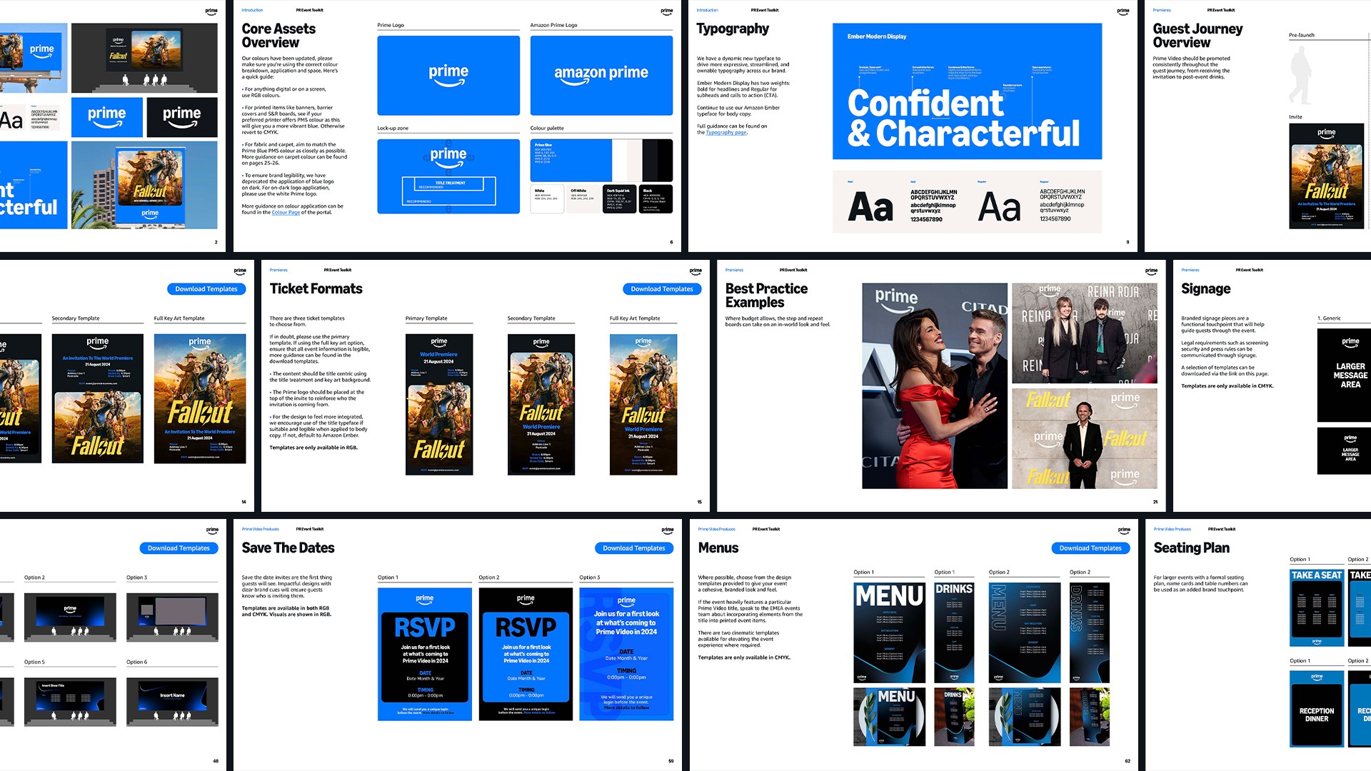Prime Video commissioned a global PR event toolkit to support premieres, screenings, and press moments across international markets following a wider brand refresh. The toolkit needed to function as a single source of truth, balancing strong brand expression with speed, consistency, and real-world usability at scale.