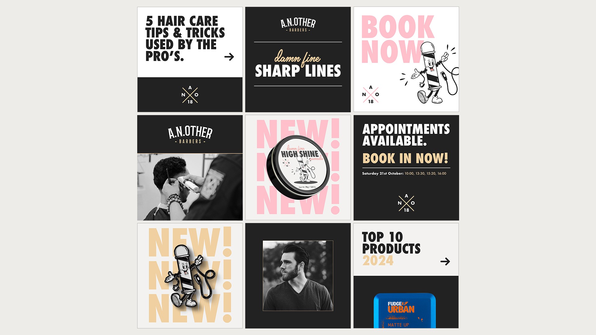 A.n.other Barbers commissioned an illustrated mascot to support the shop’s visual identity, with the aim of creating a recognisable character that could extend across signage, merchandise, and all future brand touchpoints.