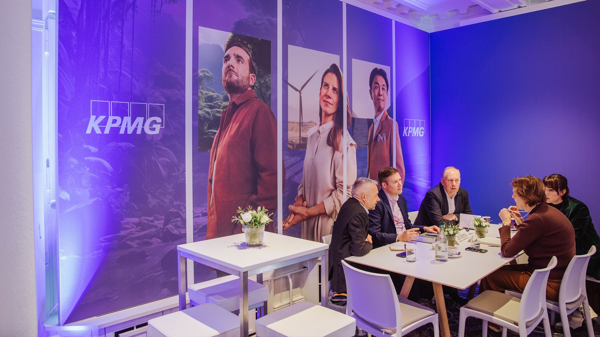 KPMG commissioned a global ESG campaign that launched as a digitally led initiative before expanding into a full interior installation for their Davos conference. The work needed to communicate complex ESG themes clearly while operating within strict brand governance and compressed timelines.
